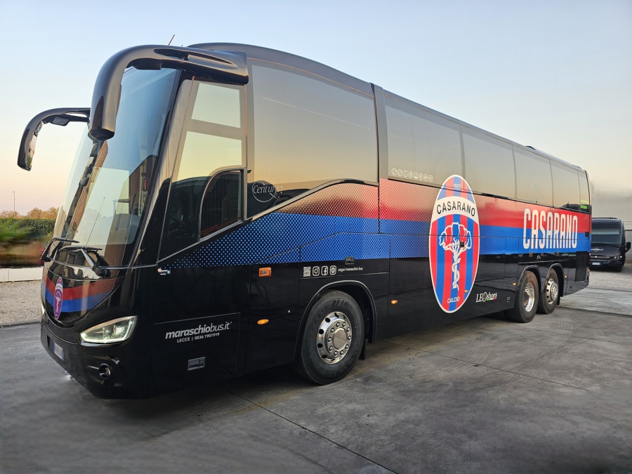 Il Nuovo Gioiello Rossoblù: È Arrivato il Bus Ufficiale del Casarano Calcio Firmato Maraschio!